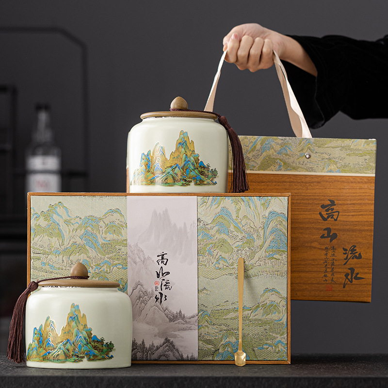 メーカー直販茶葉包装ギフトボックス空箱陶磁器茶葉缶密封保存茶缶紅茶緑茶1斤ギフトボックス