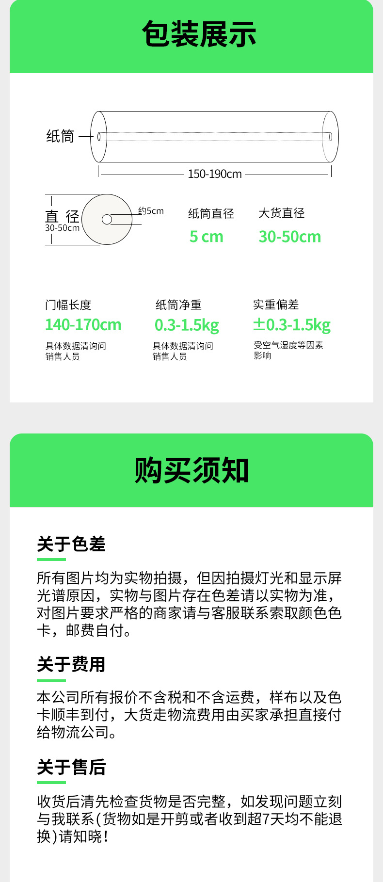 仕様 米様 (1メートル),全巻 (60メートル),大型商品 (800メートル)