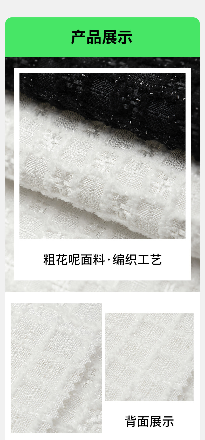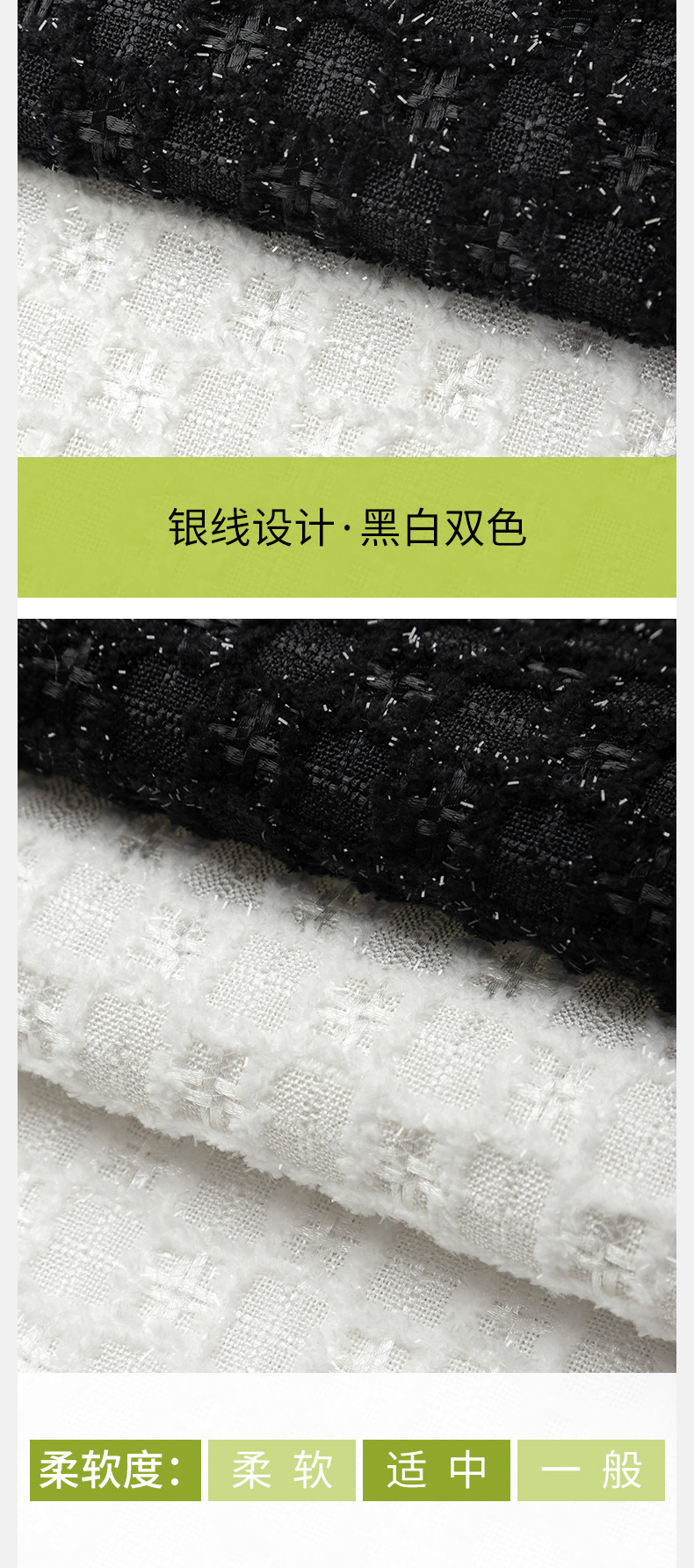 小香風生地粗織織り粗花は白黒格子金糸コートスカートセットバッグ布卸売り