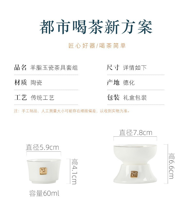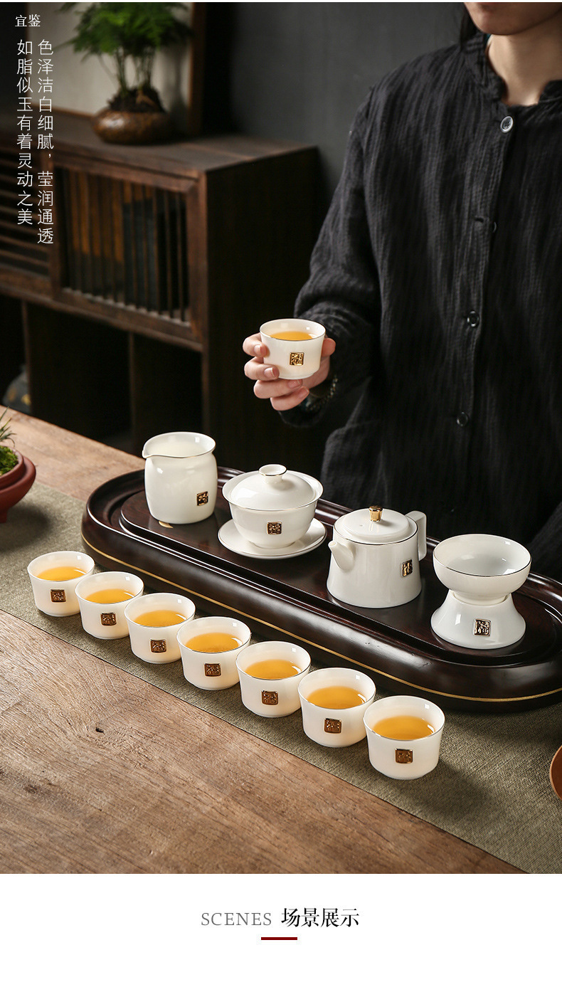宜鑑吉祥如意氷種羊脂玉茶器セット徳化白磁工夫茶器家庭用商用お土産