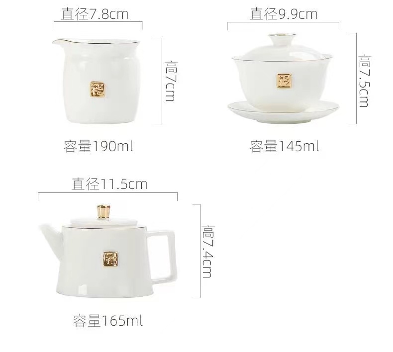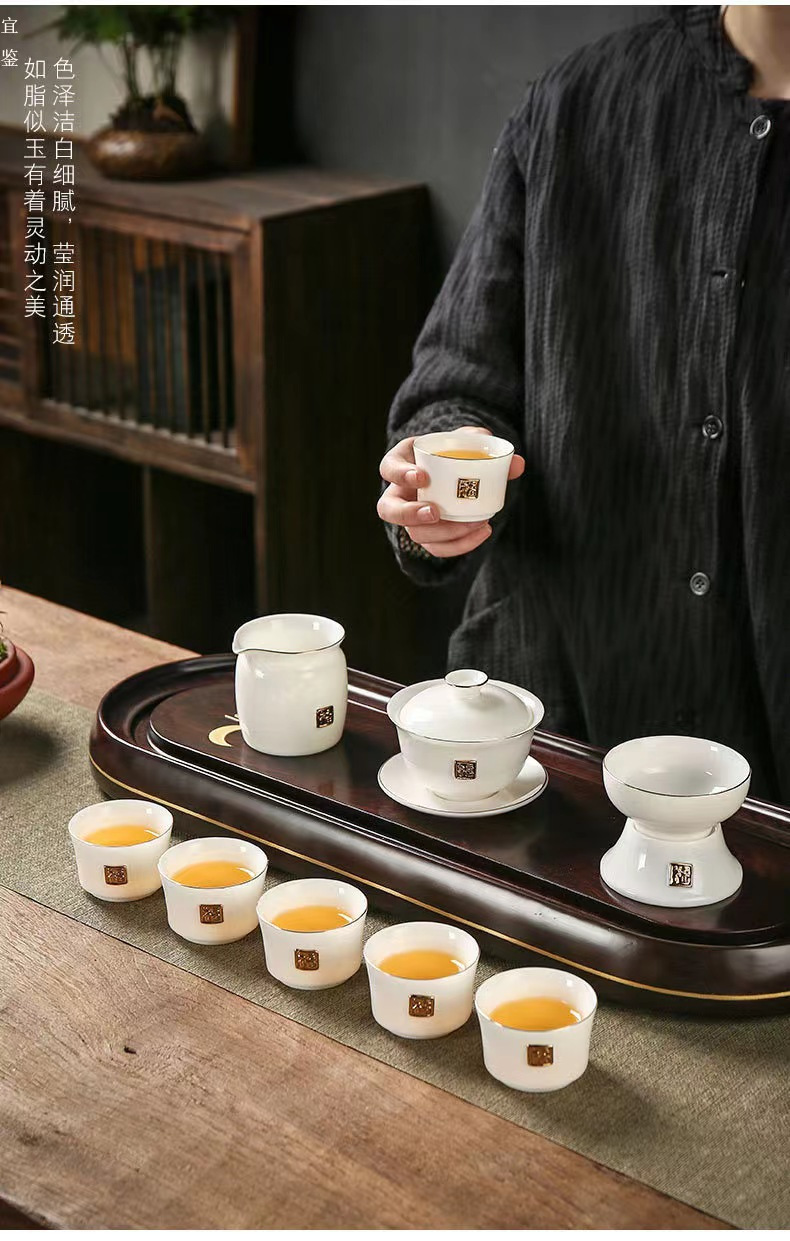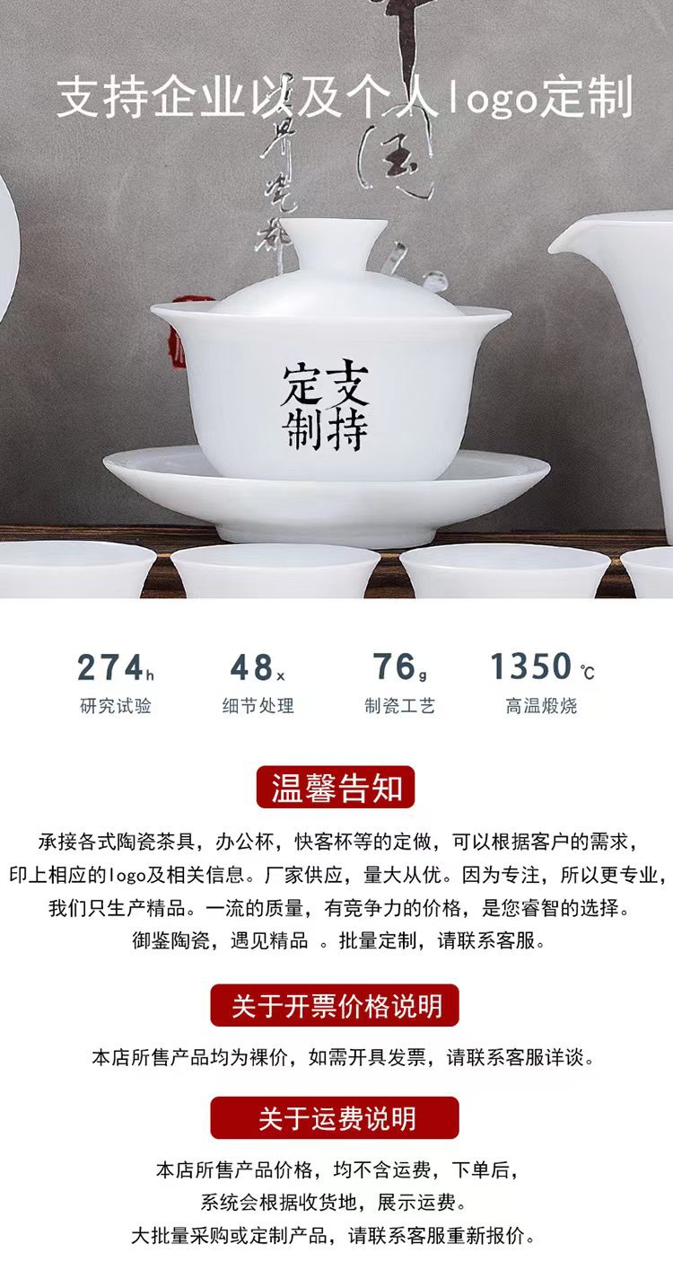 羊脂玉白磁茶器セット全セットの工夫茶器蓋碗茶杯旅行茶器卸売り礼箱印logo