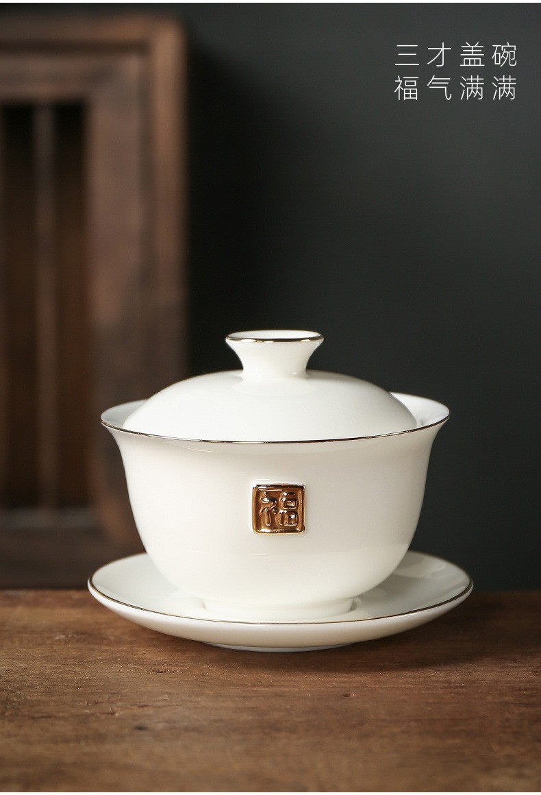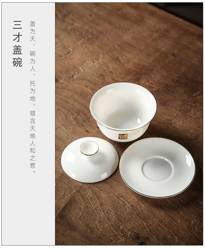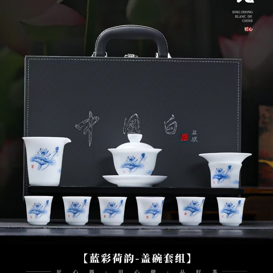 德化白冰种玉瓷茶具套装家用轻奢高档盖碗茶杯功夫茶具泡茶礼盒装