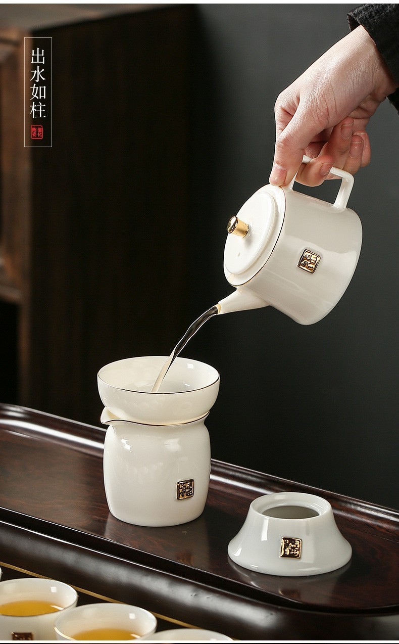 Yijian Heyun 純粋な翡翠アイスティーセット、金彩羊脂翡翠カンフーティーセット、徳化白磁、軽い高級なお土産