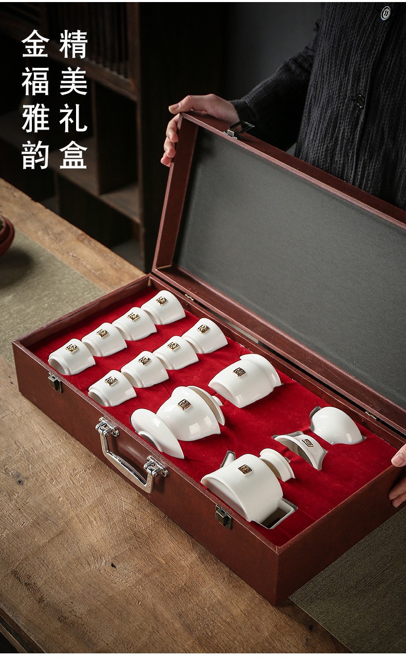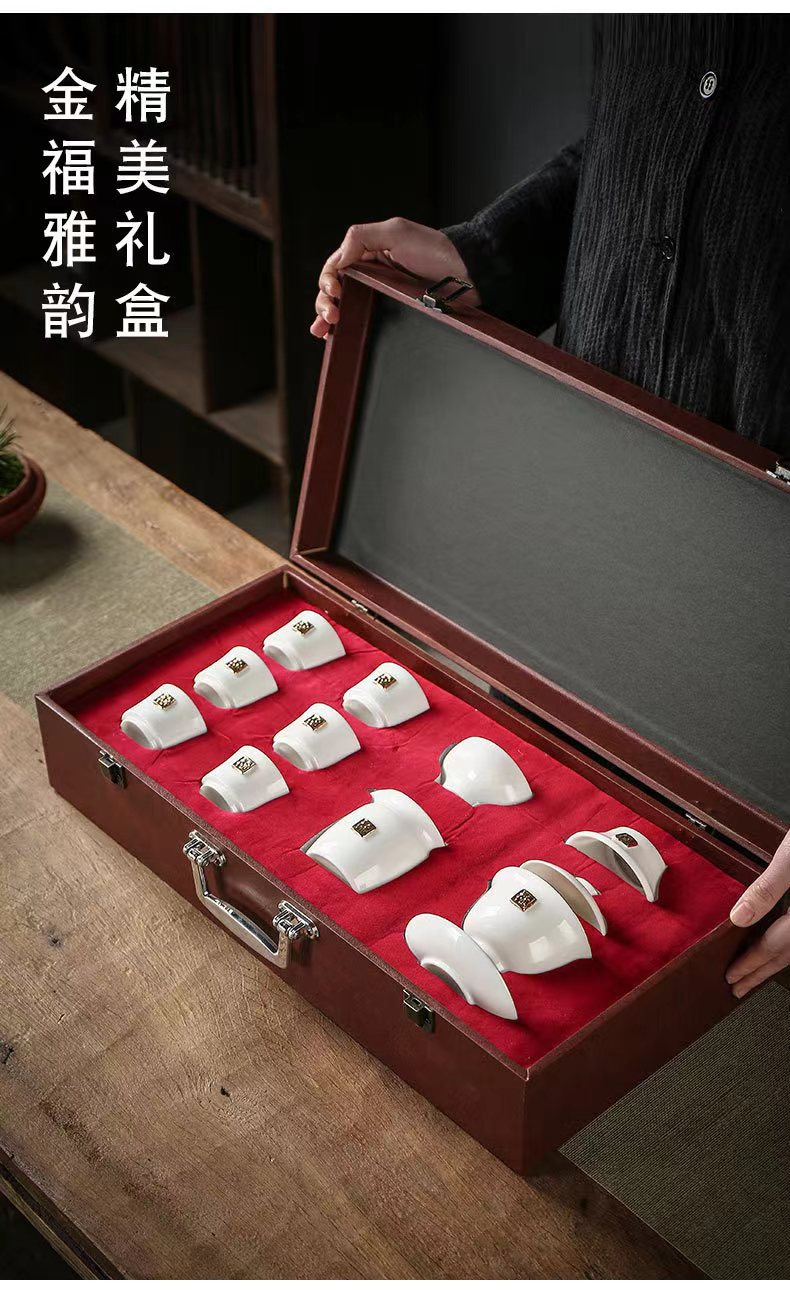 オーダーメイド徳化玉磁器羊脂玉金福陶磁器茶器セット