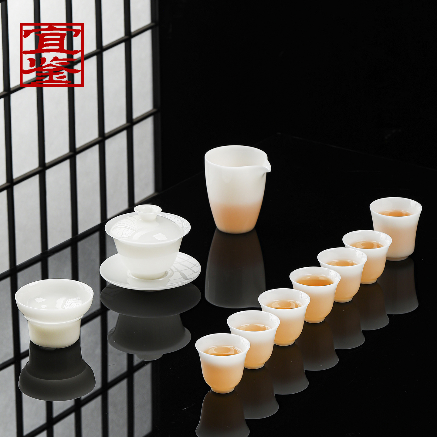 宜鑑氷種羊脂玉茶器セット青韻素焼徳化玉磁器工夫茶器家庭用商用お土産