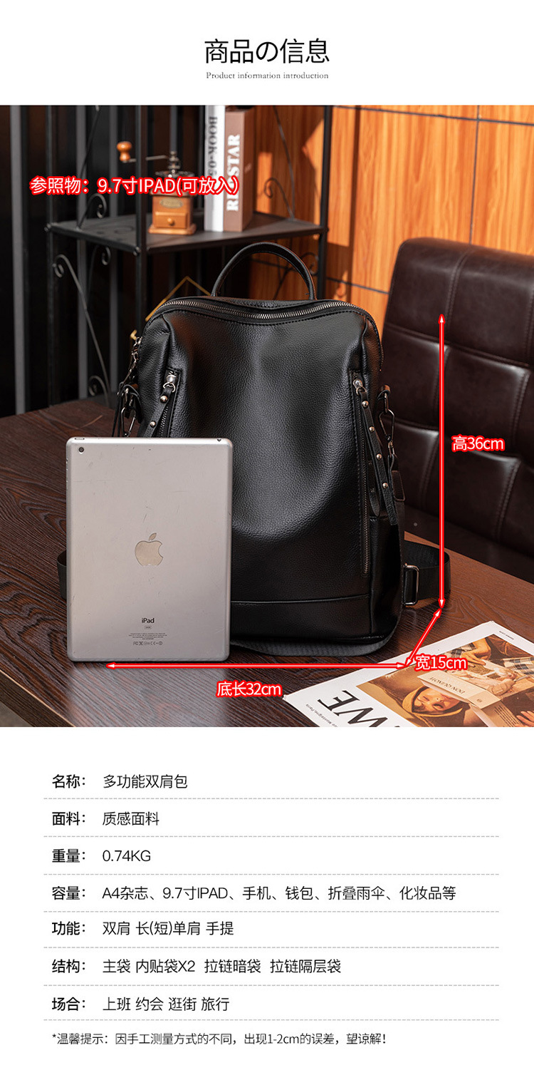 跨境新款女士双肩包潮流时尚背包防盗女包通勤书包单肩商务包包女