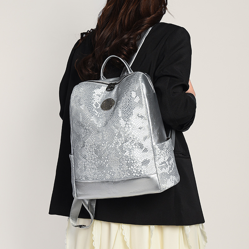 クロスボーダーカラーバックパック、多用途で人気の菱形トラベルバックパック、スプライスされた牛革、トレンディなヘビ革のパターンの女性用バッグ