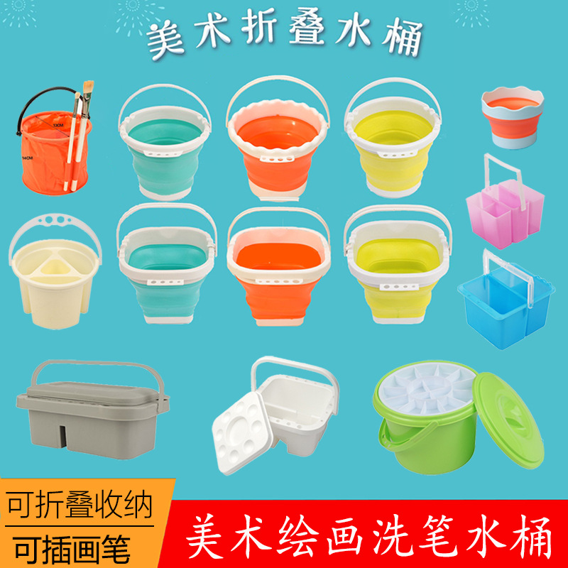 卸売り多様式美術折り畳みバケツ写生携帯洗筆筒画絵の具シリコン洗筆桶調色桶