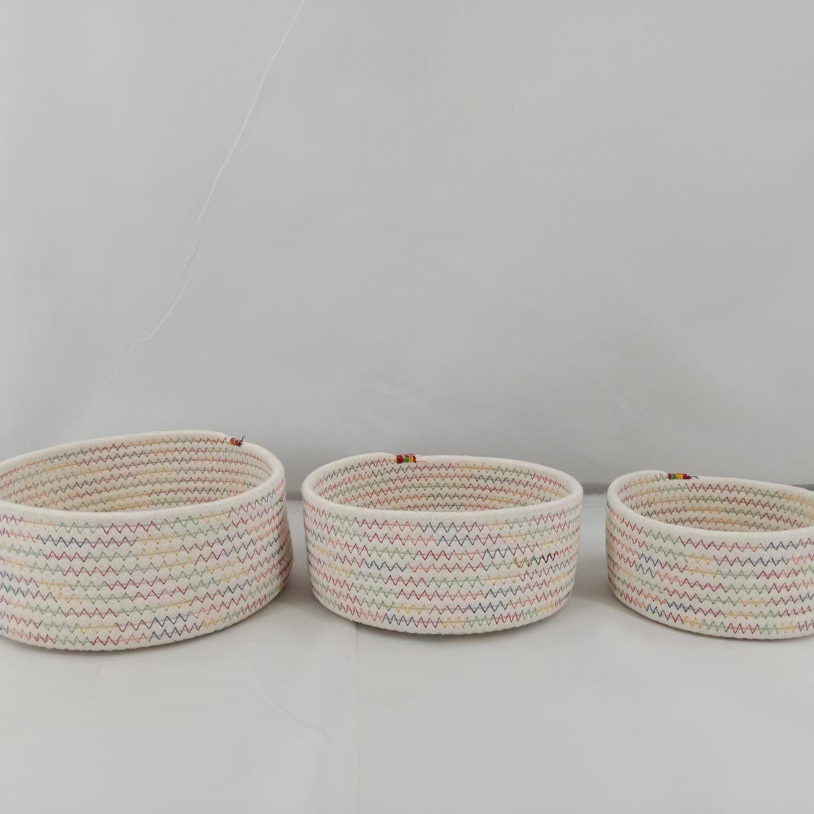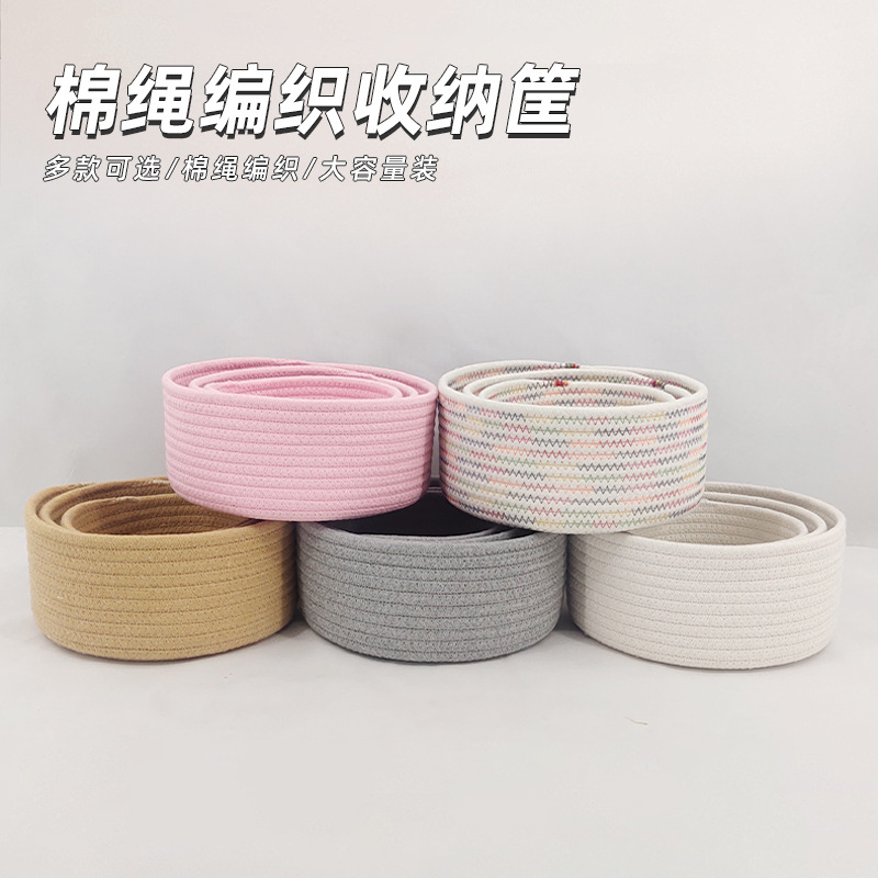 玄関鍵財布収納バスケット純色収納バスケットデスクトップスナック収納バスケット綿ロープ収納バスケット輸出卸売