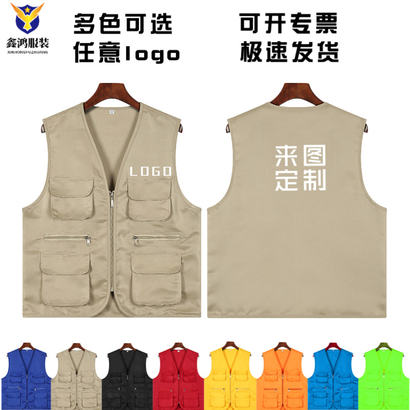 多ポケットボランティア馬甲カスタム印字ロゴ写真家記者釣り工装馬甲