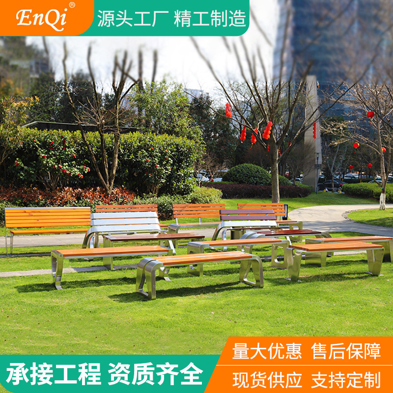 公园椅户外长椅不锈钢菠萝格休闲椅长条防腐木庭院小区靠背椅景区