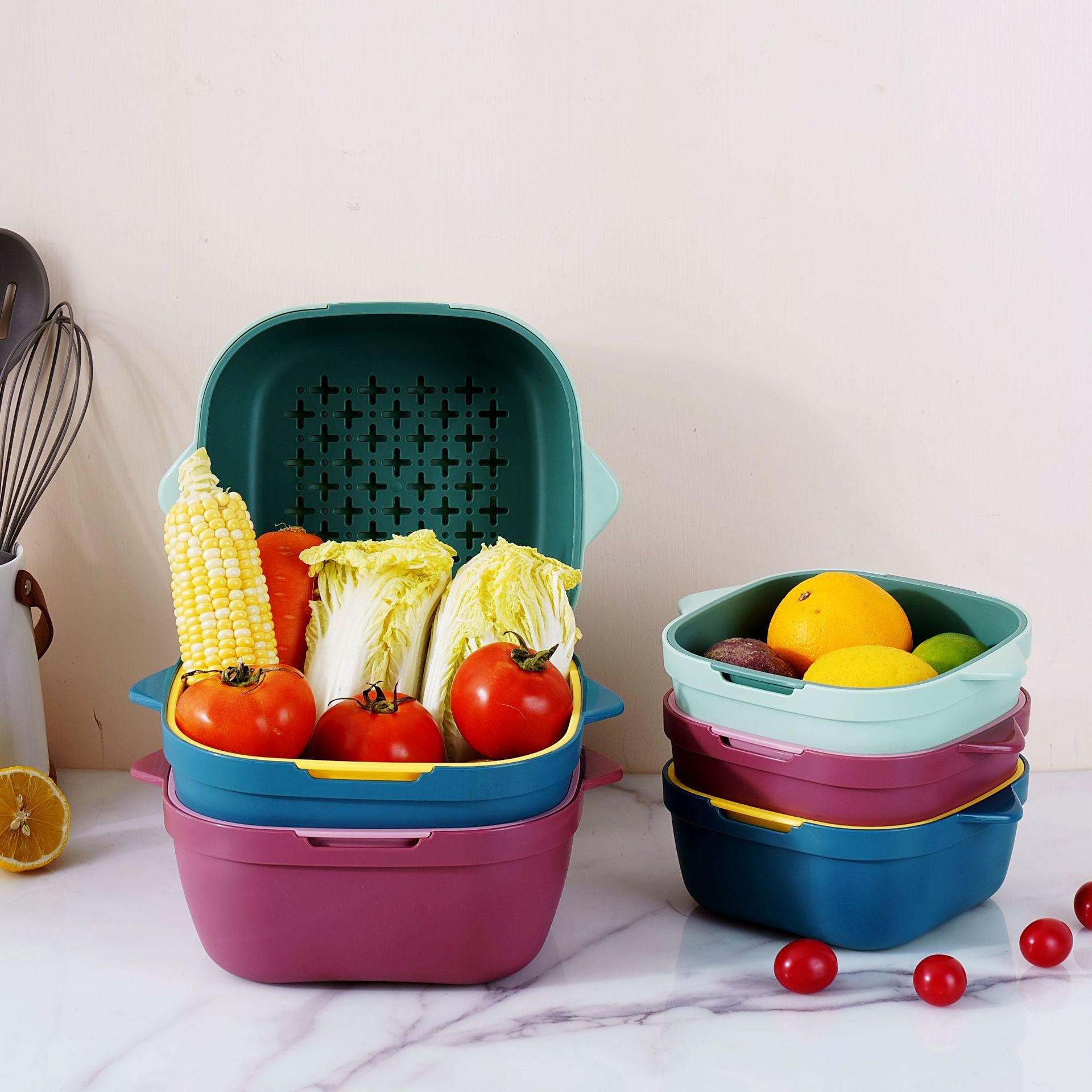 北欧風二層プラスチック水切りバスケット洗濯鉢北欧スタイル家庭用水洗い果物皿角型バスケット