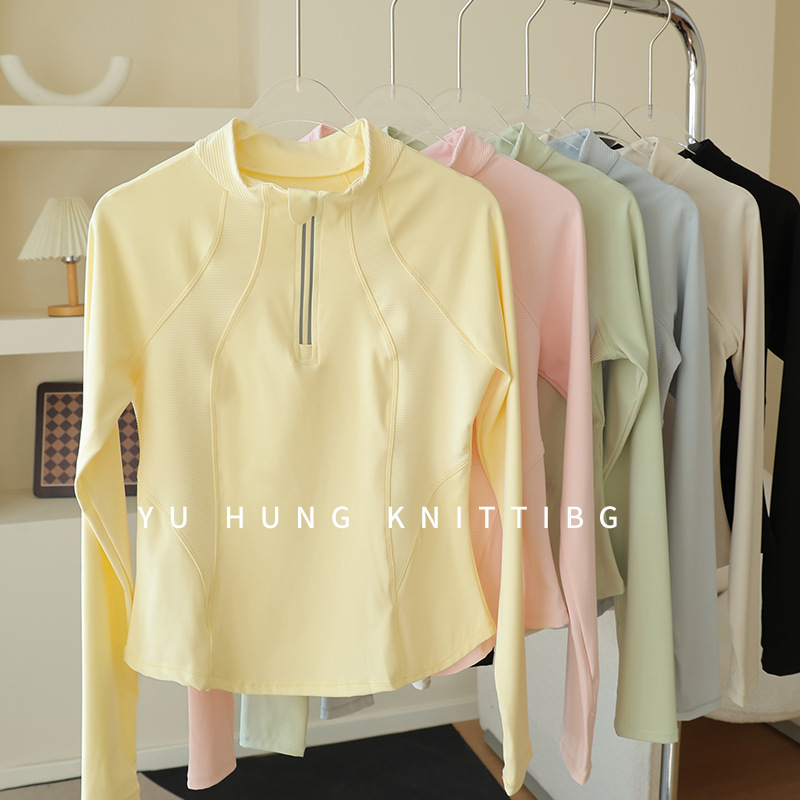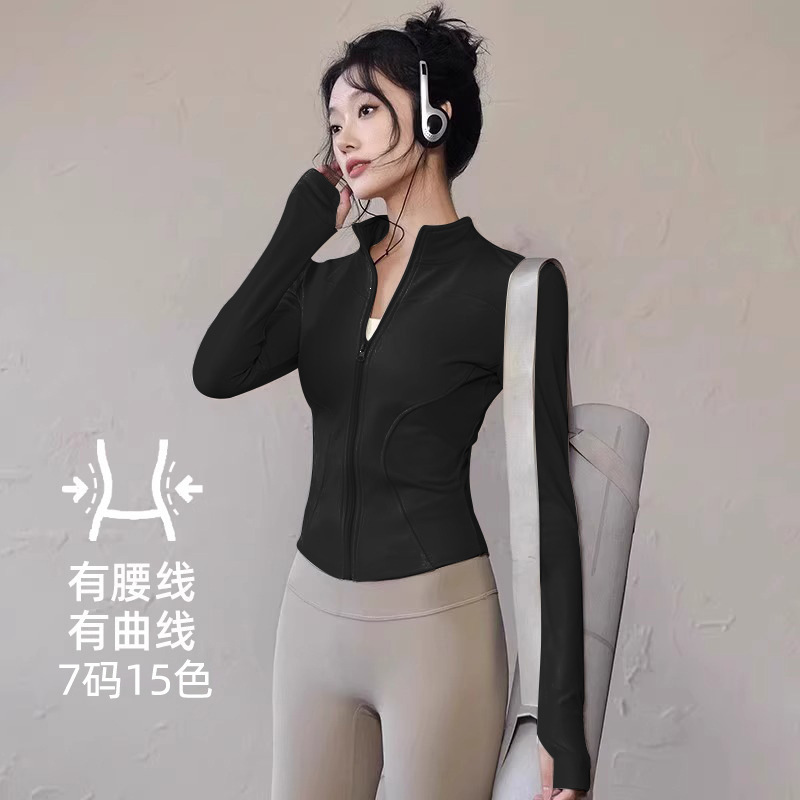 女性用スタンドカラーヨガジャケット、ランニングスポーツフィットネスウェア、長袖日焼け止め速乾ウェア、ルルと同じスタイルのヨガトップス