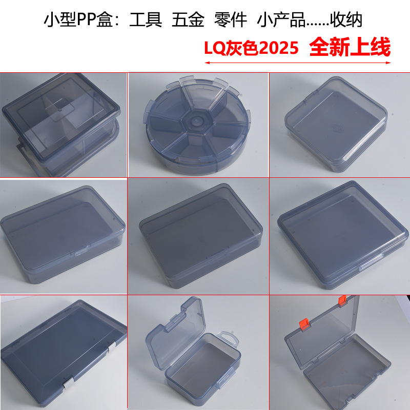 四角形のPPプラスチックの箱の小さい灰色の収納箱は蓋の部品の箱の小さい製品の包装箱の金属の工具の箱があります。