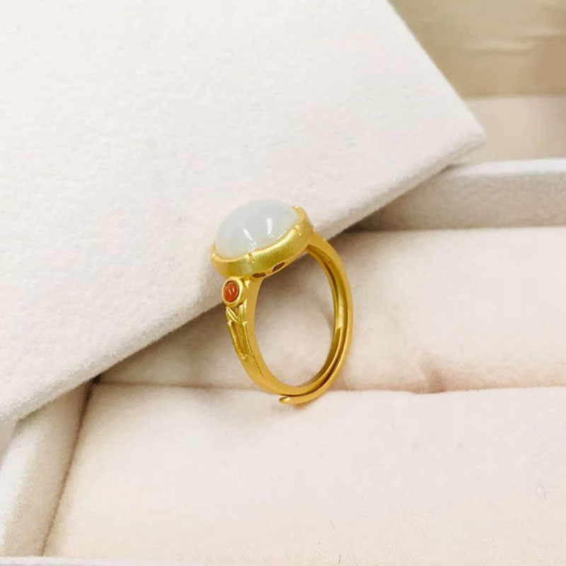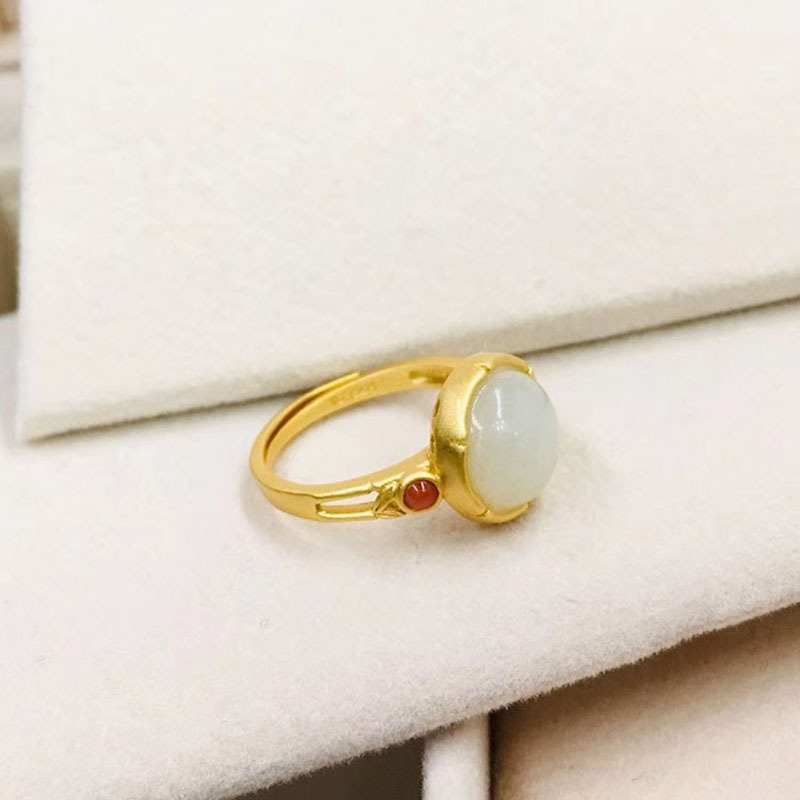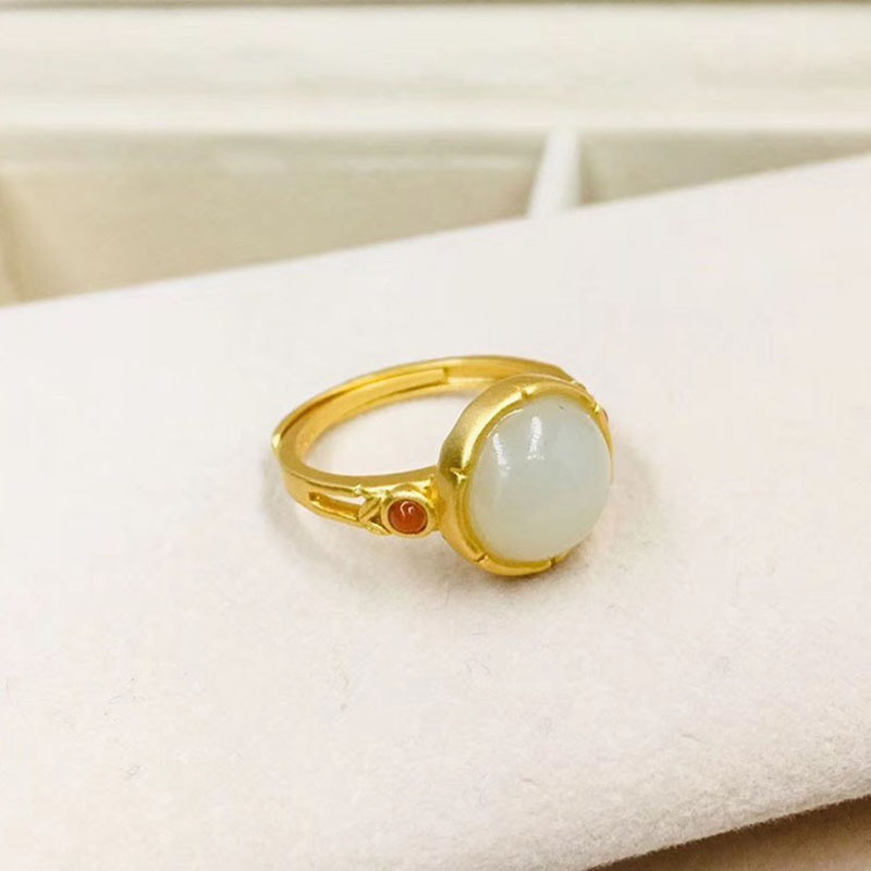 レトロ気質天然和田玉白玉指輪宮廷風デザイン百合金女性指輪開口s925銀