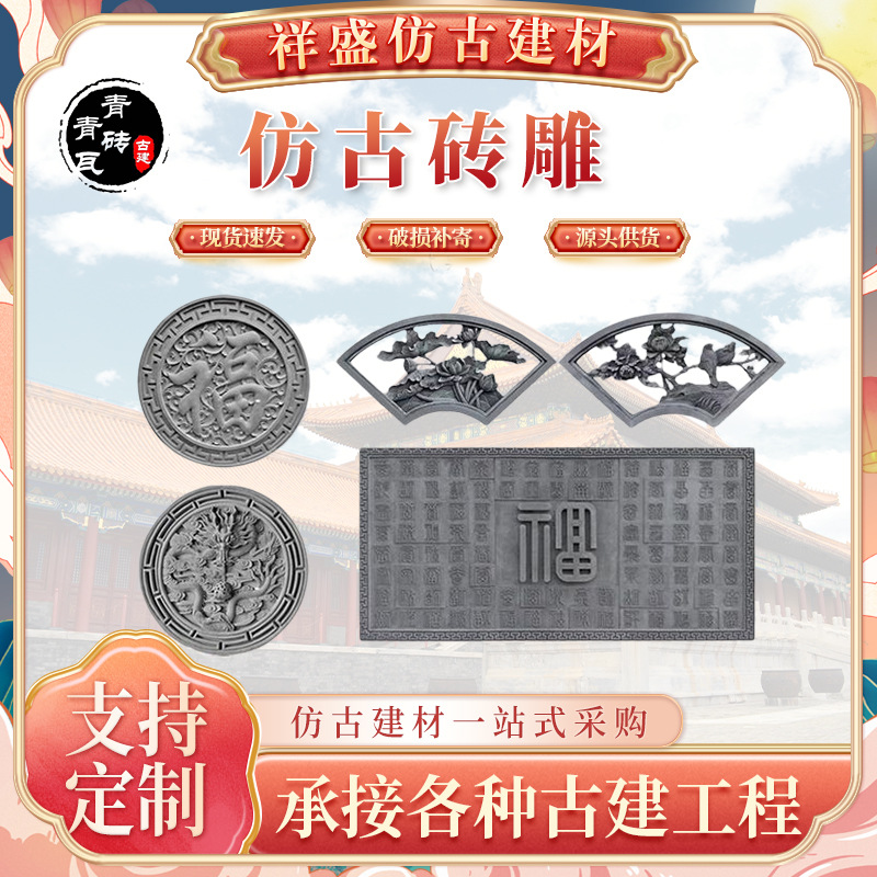 アンティークのレンガの彫刻は古い円形の福の字のレンガをまねて中国式の庭の浮き彫りの影の壁のレンガの彫刻の古いレンガの彫刻のペンダントを作ります。