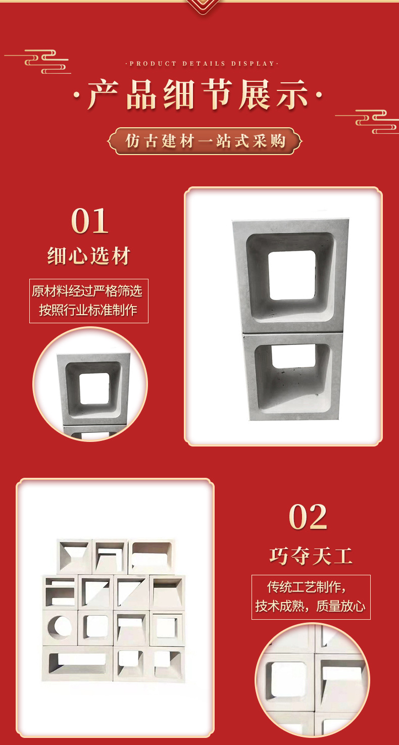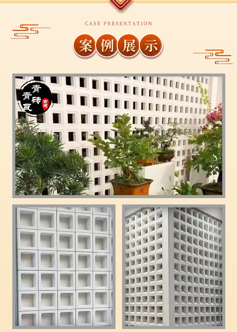 軽量発泡セラミックスpu空心煉瓦ネット赤背景壁装飾屋外両面セメント空心煉瓦仕切り