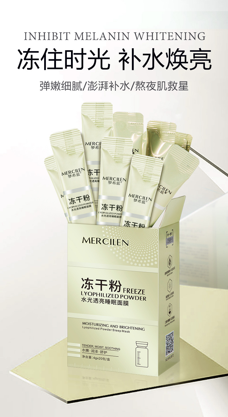 夢希蘭水光透亮フリーズドライパウダーマスク、保湿・潤いを与える塗るタイプのナイトマスク、洗い流さないフリーズマスク、肌のトーンを明るくします。