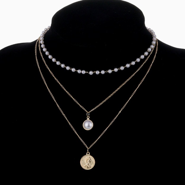 シンプルで甘いins冷たい風ネックレス女性ビーズ多層真珠鎖鎖首鎖真珠ペンダントネックレス