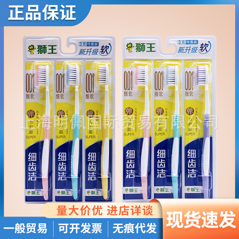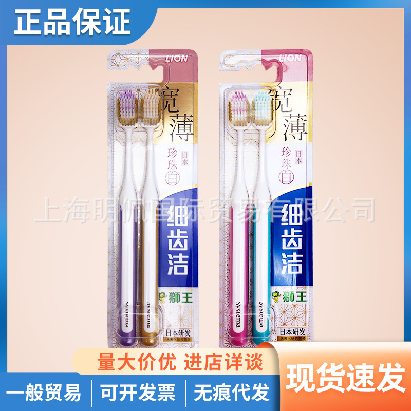 日本獅子王の細い歯の清潔な幅の薄い真珠の白い幅の柔らかい毛の歯ブラシの2本は家庭を詰めて男女のカップルを詰めます。