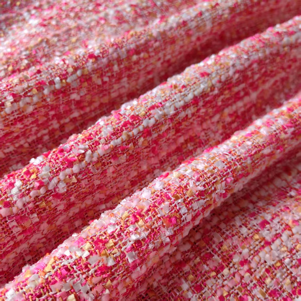 春夏の赤色の粗い紡績の小さい香風の粗い花の生地の毛のコートのカバンのズボンのスカートのおもちゃの生地の現物は直接供給します。