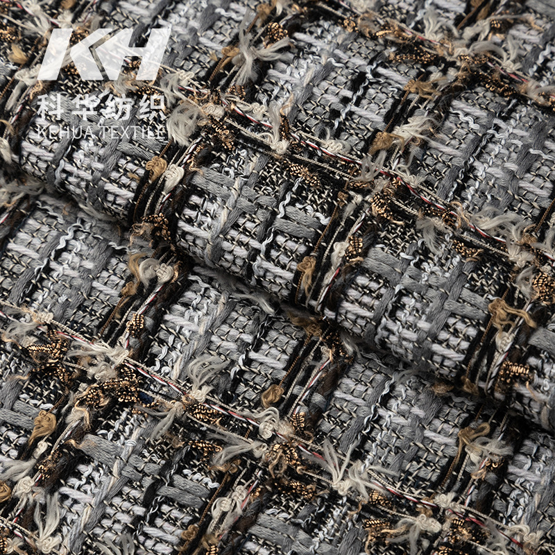 粗織り金銀糸入り小香風生地 編み物生地 ウール粗花呢生地 女性服 靴 帽子 バッグ用花柄生地