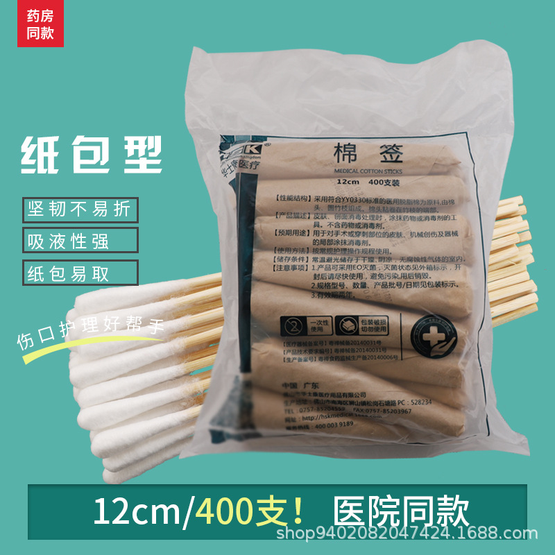 医療用綿棒400本滅菌医薬使い捨て紙バッグ無菌傷口婦人科卸売り消毒シングルヘッド