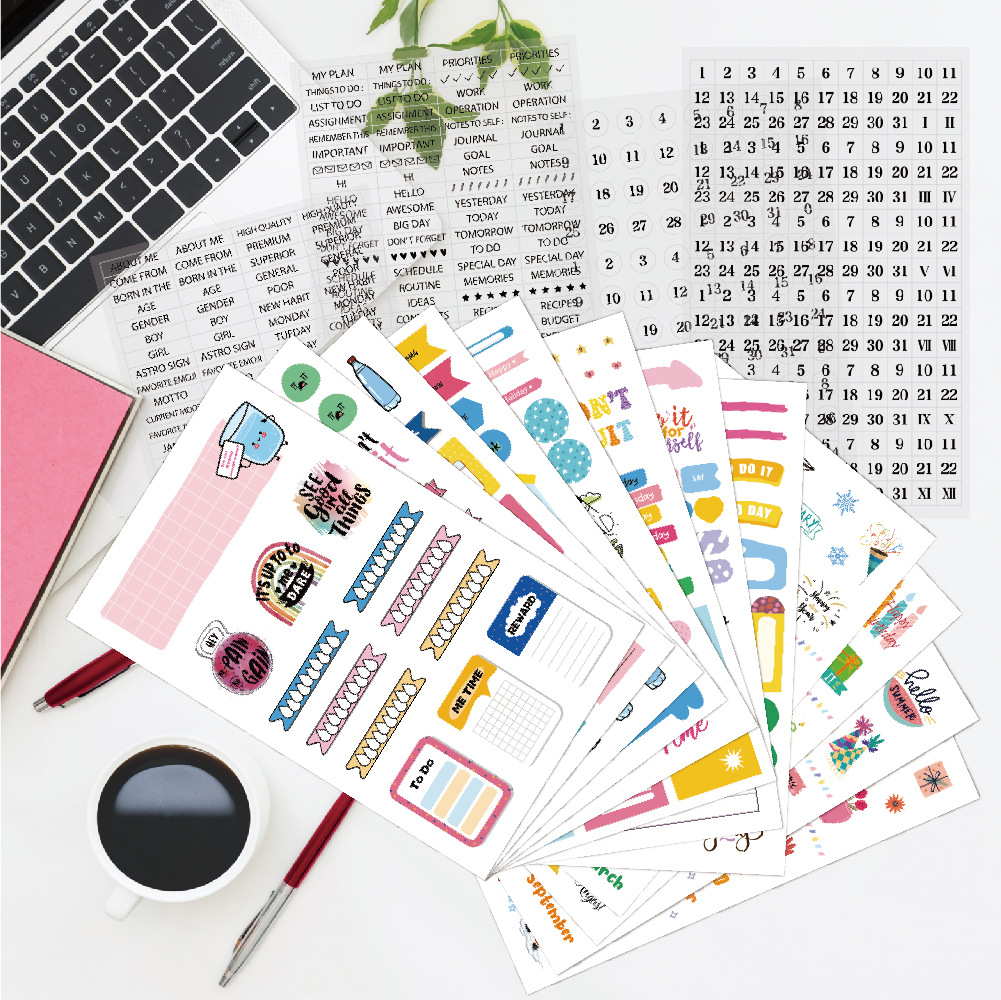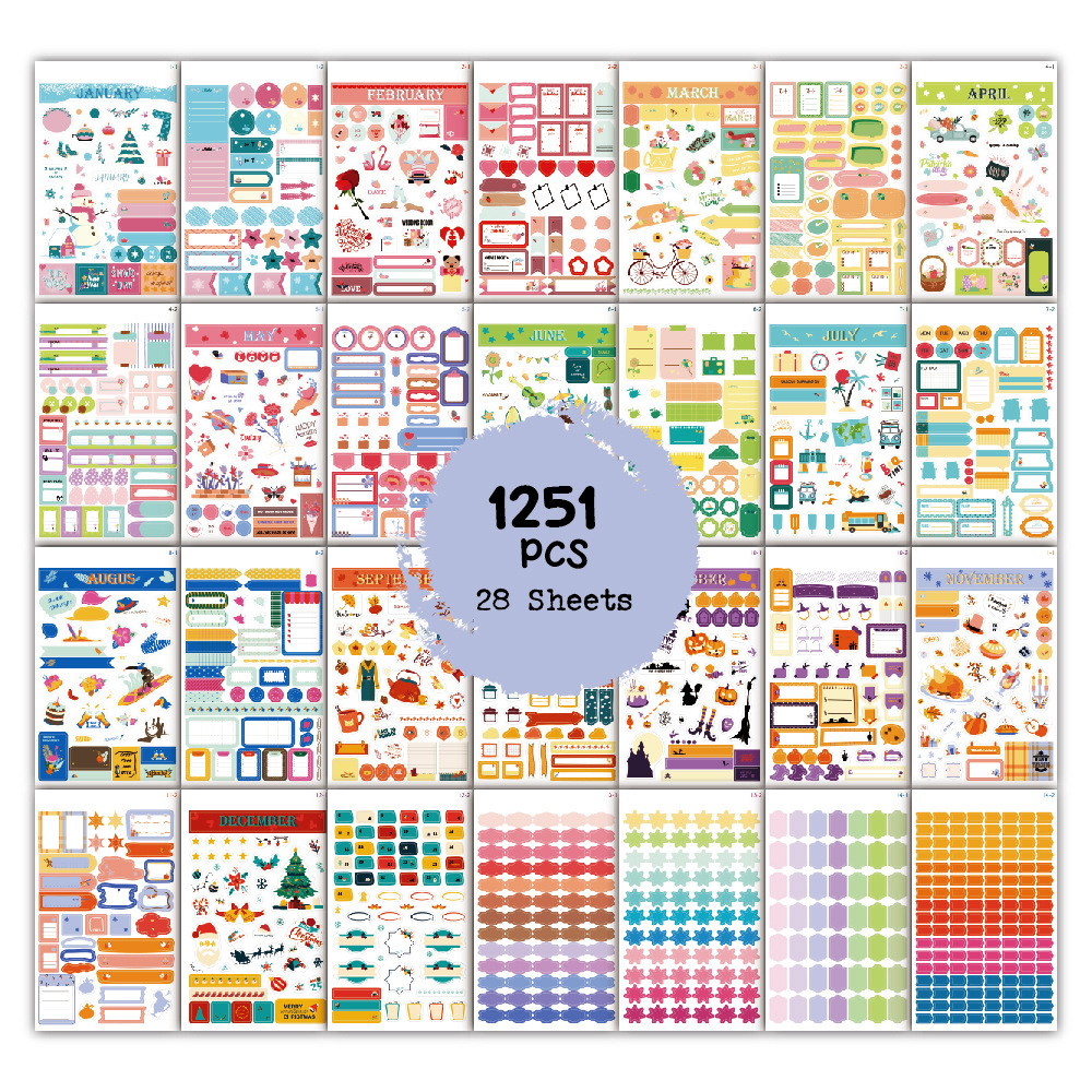 内容:12个月份,季节、节日、生日、读书、休息、目标、提示等日常用的195个贴纸。