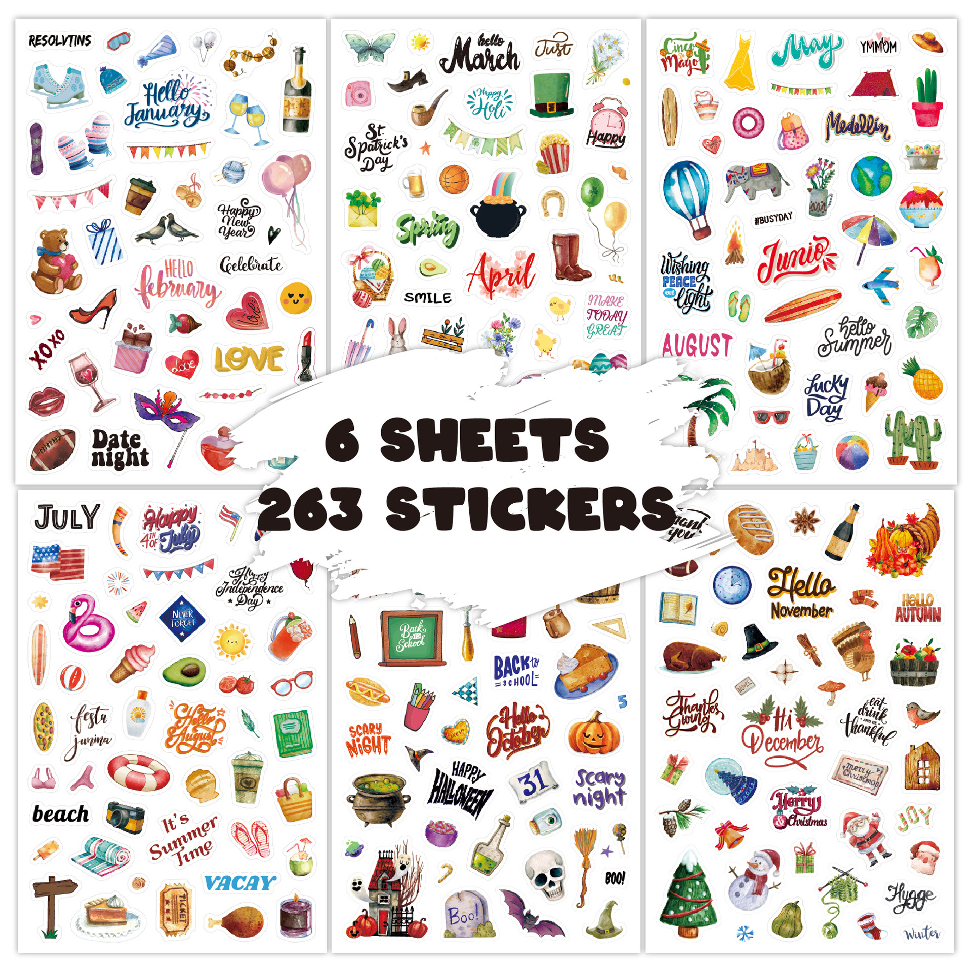 张贴纸 包含12月份以及每月有3枚装饰贴纸 如 新年-情节人-圣帕特里克节-母亲节-万圣节-圣诞节等等一年中好节日贴纸,用于标记您与家人朋友团聚美好节日提示。