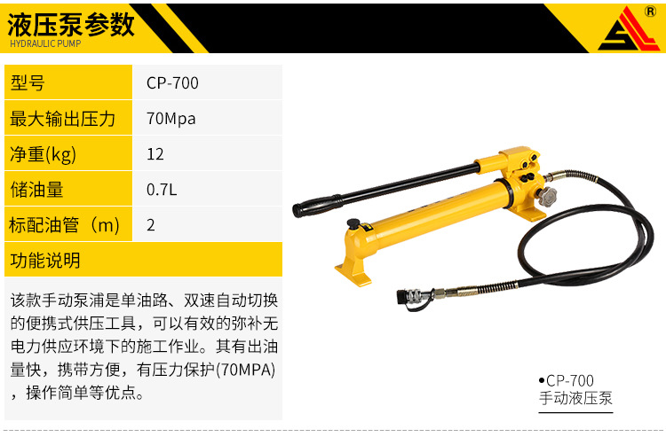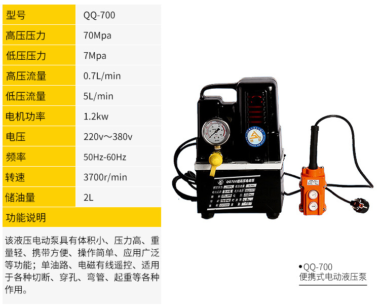 リチウム電気電動ポンプ手持ちポータブル油圧ポンプSL-240S小型70メガパ圧力超高圧油圧ポンプ