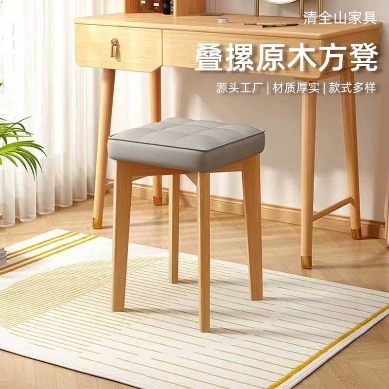 家用可叠放餐桌板凳方凳餐厅客厅吃饭软包休闲凳简约梳妆凳餐椅