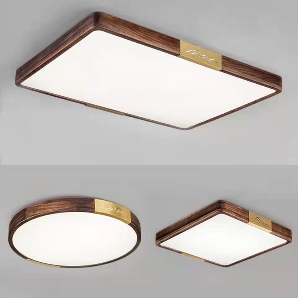 新中国式天井照明器具LED黒胡桃木色長方形客間全部屋セット実木寝室ランプ