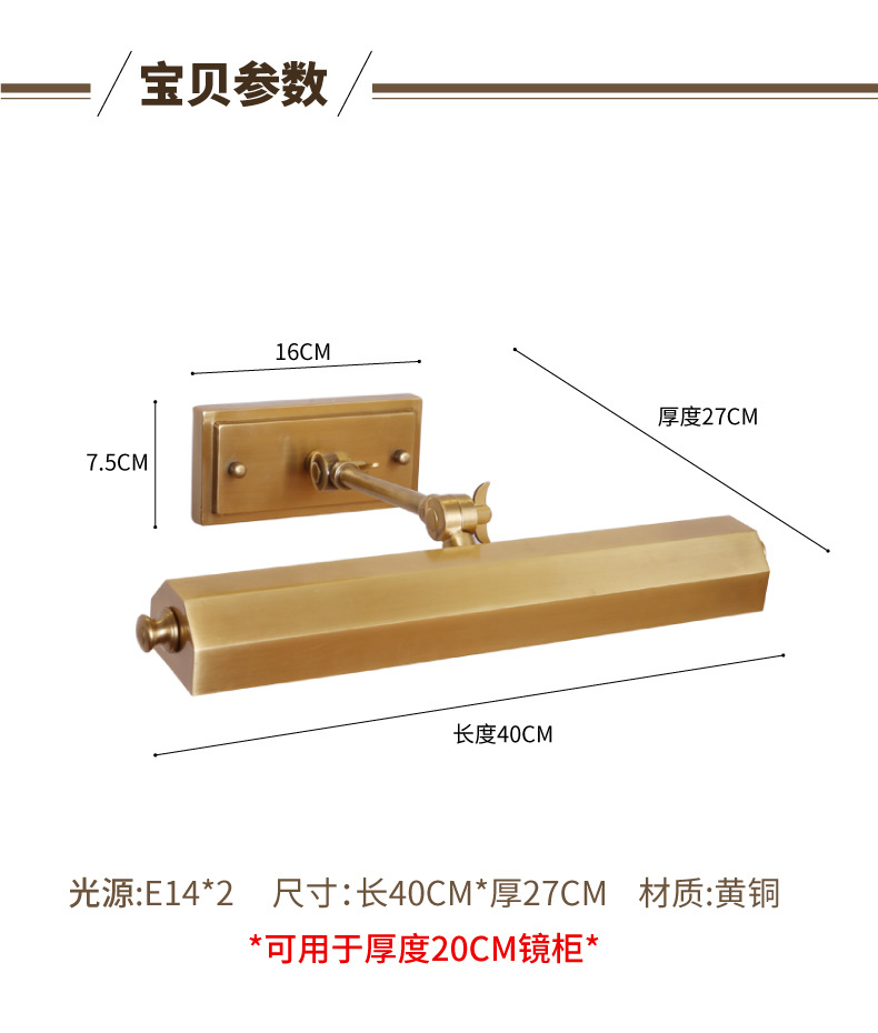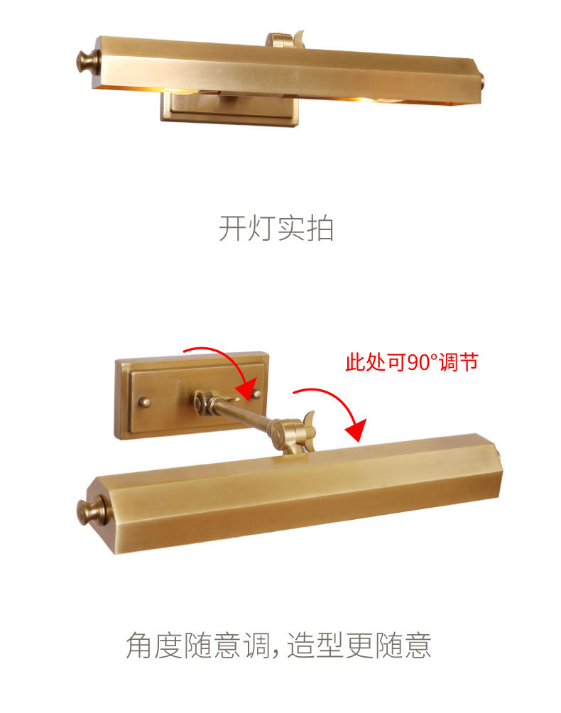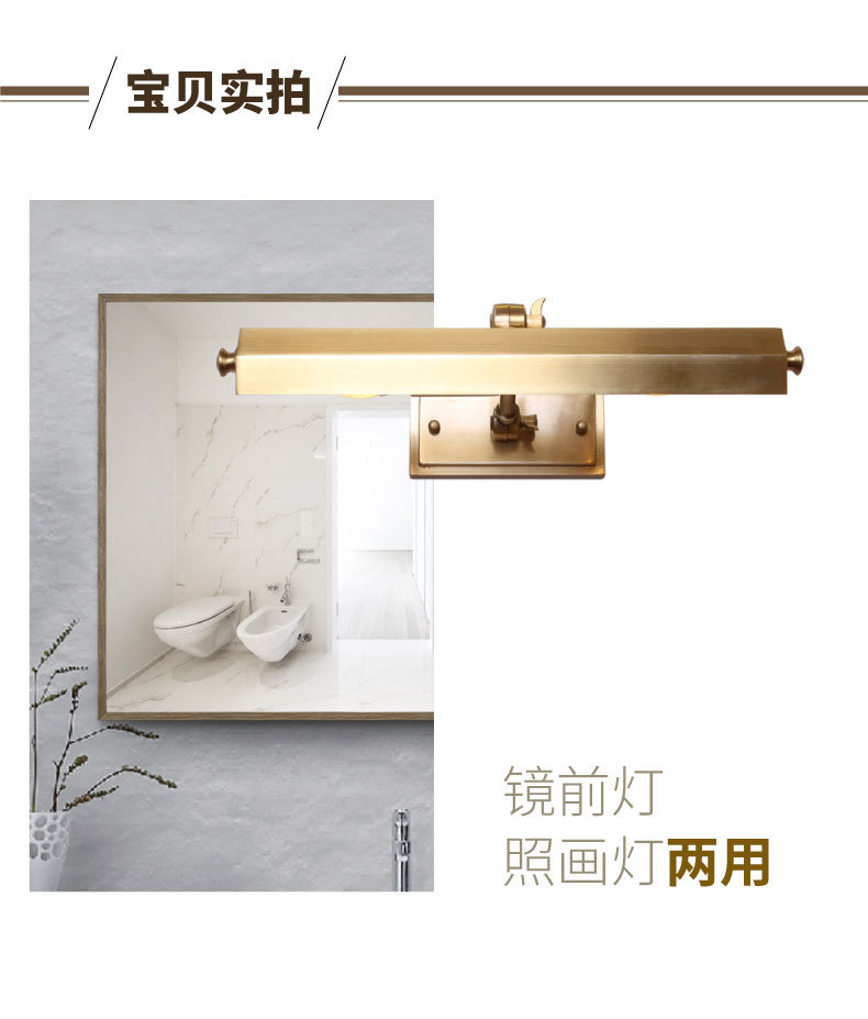 輸出品質全銅鏡ヘッドライトアメリカシンプル現代風化粧灯創意浴室壁灯鏡照明工場