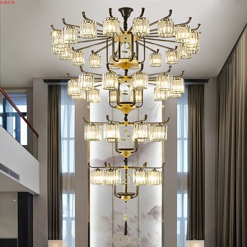 現代のシンプルな複式ビルの5階の客間の大きいシャンデリアの2階の明かりの中国式の別荘の中空のホールの水晶の大きいシャンデリア
