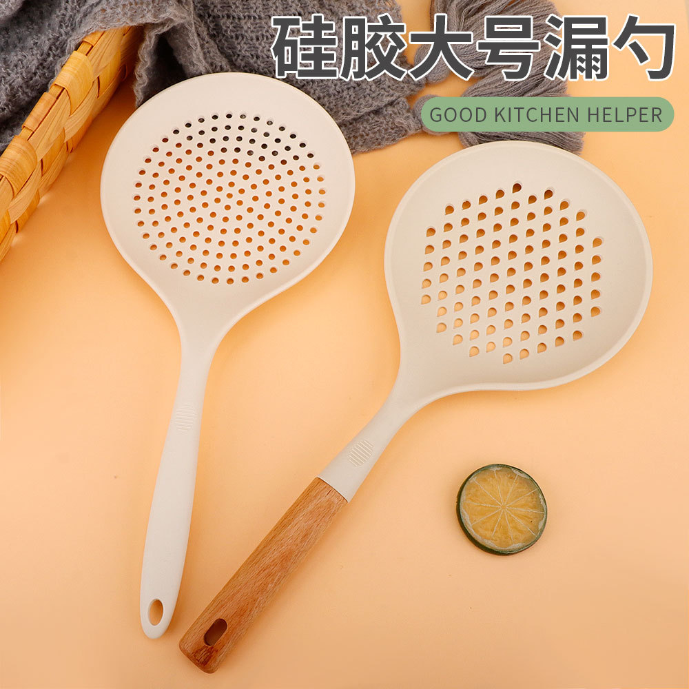 现货长柄硅胶捞篱过滤勺硅胶大漏勺家用耐高温捞面捞饺子沥水漏勺