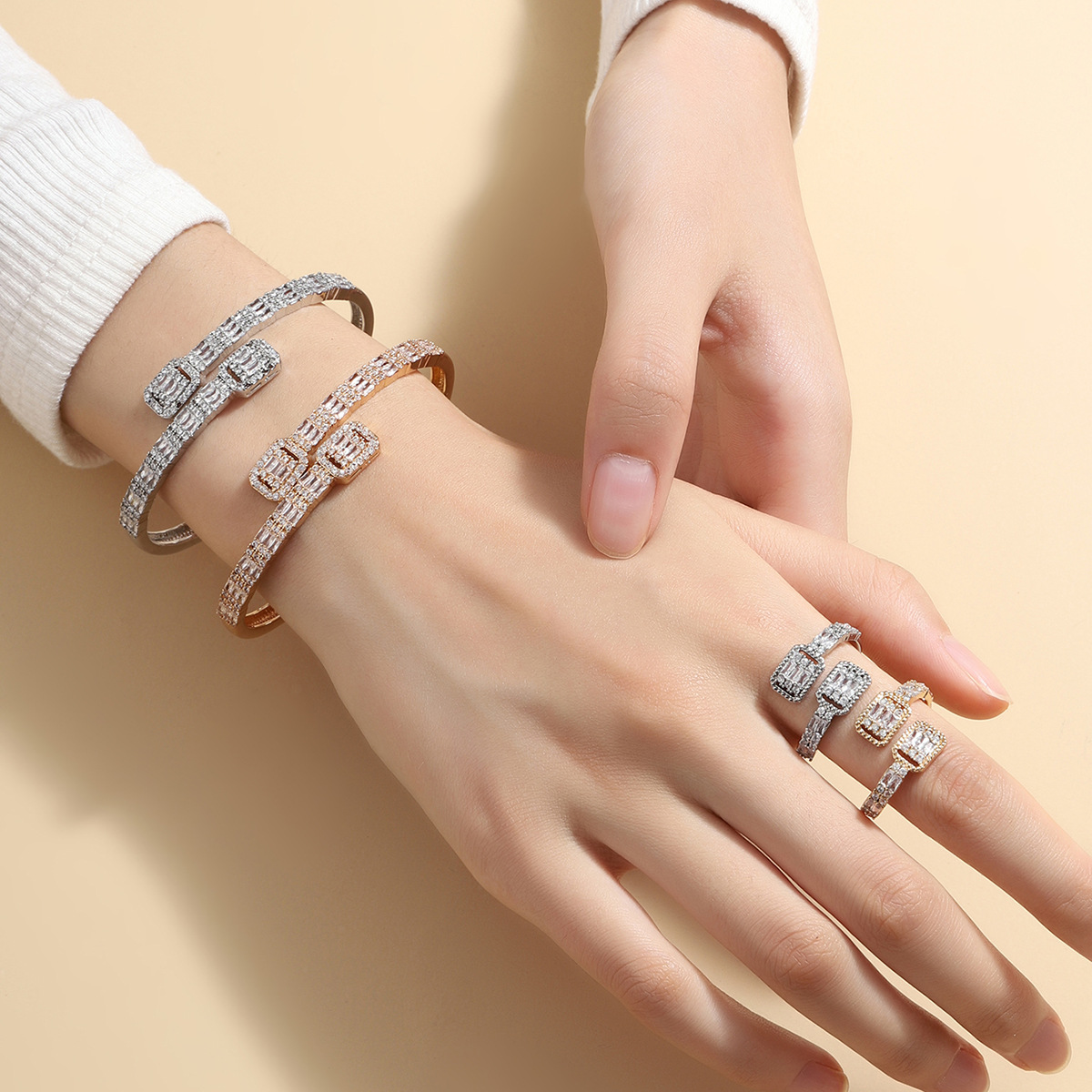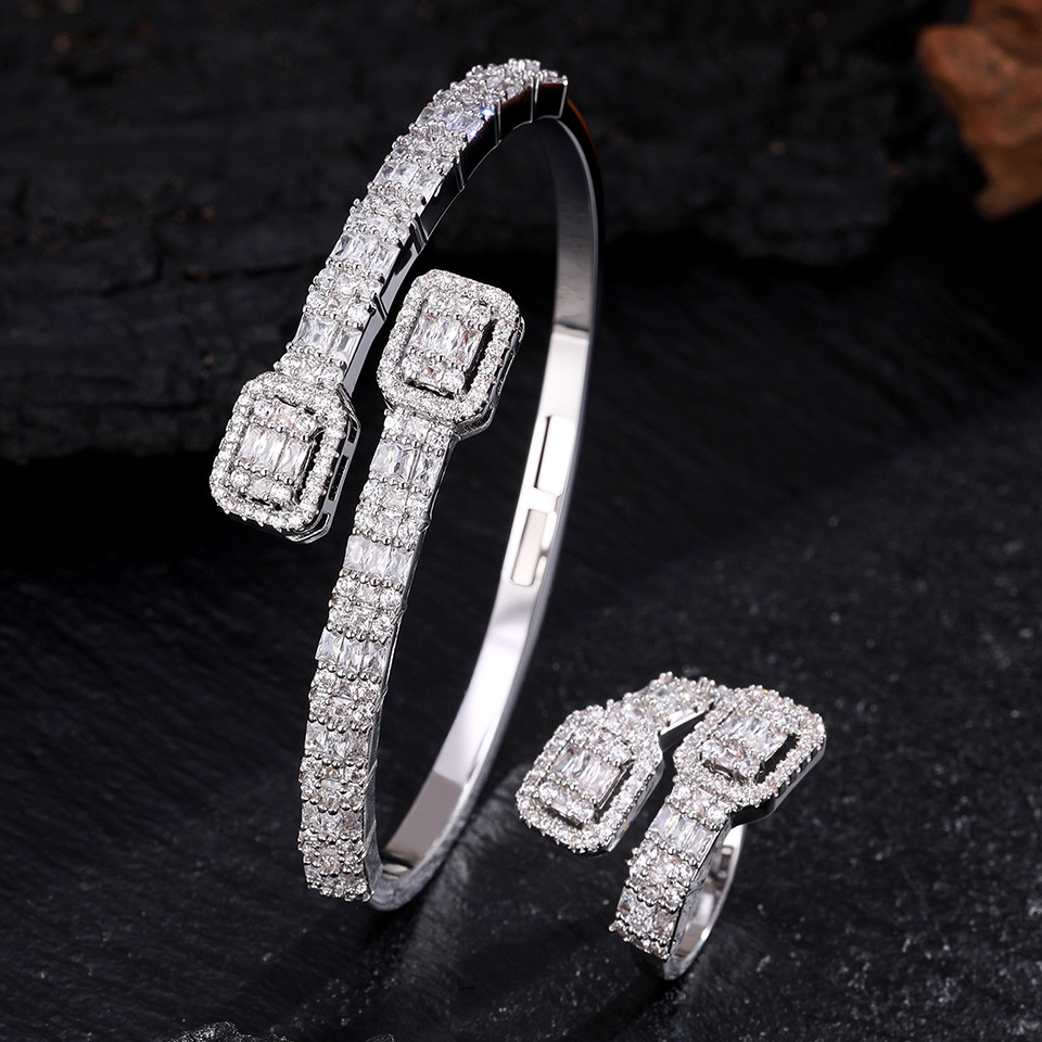 欧美跨境热销时尚轻奢满钻手镯戒指套装女简约高级感百搭手饰批发