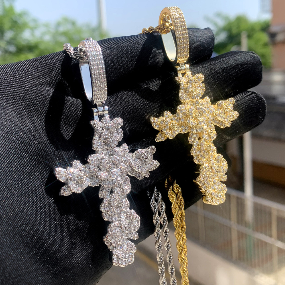 クロスボーダーのヒップホップの新型のバラのクロスのジルコンのペンダントのhiphopのファッションのファッションの男性のネックレスは代行します。