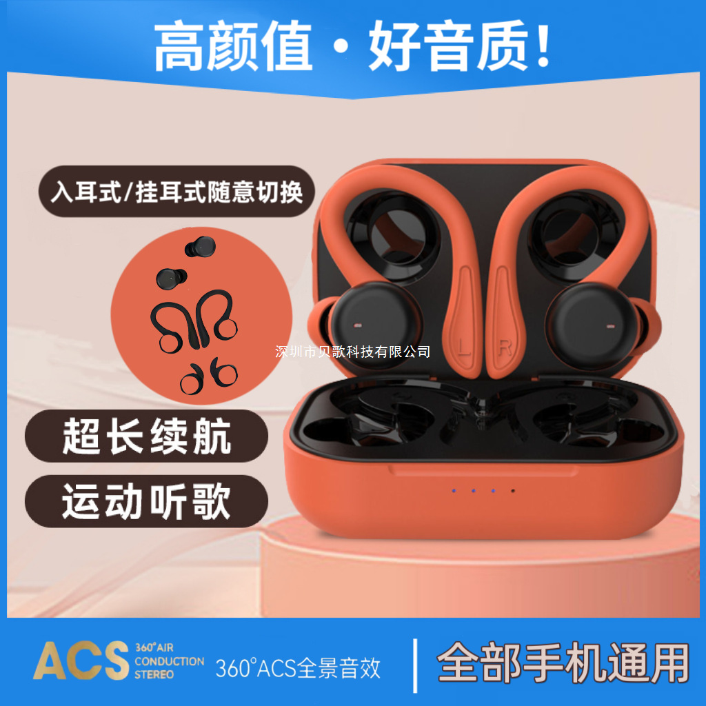 新款私模TWS真无线运动蓝牙耳机 双耳触控IPX6防水挂耳式蓝牙耳机