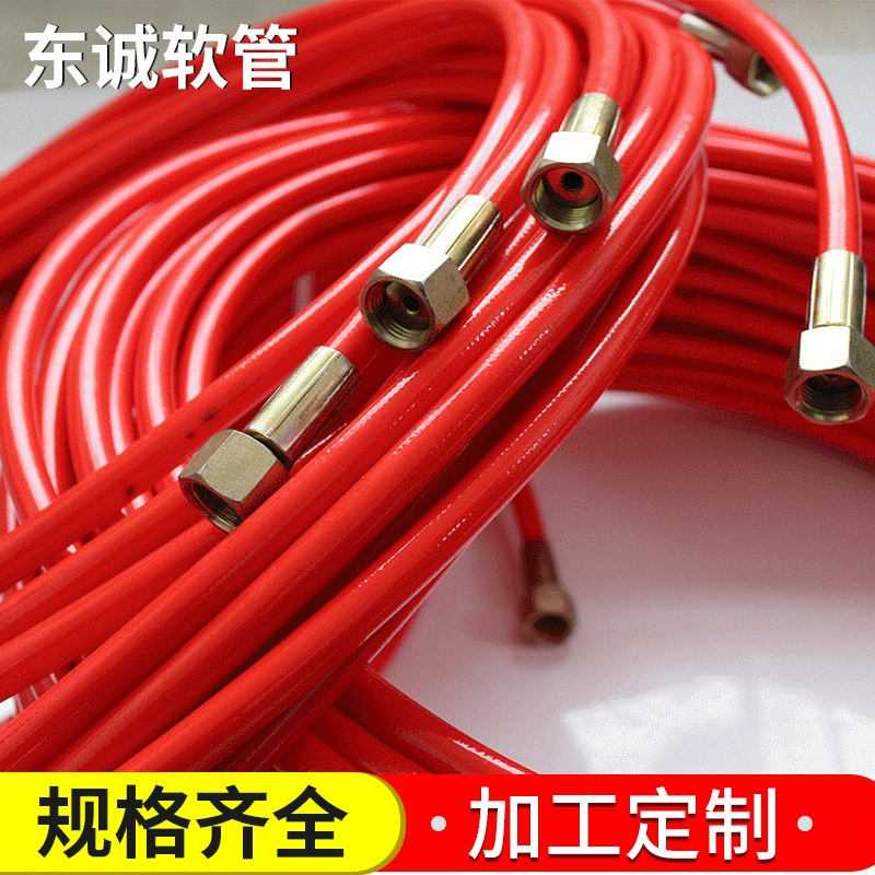 本产品是新一代高科技工业软管,它具有很多传统软管无法达到的优秀特点。该软管性能适应于液压、气动、高压喷涂、高压清洗、洗体喷砂,耐各种油脂、各种气体、耐水、耐酸碱等,耐老化是橡胶软管的3倍以上,广泛用于工程机械、机床、船舶、铁路、矿山、石油化工、汽车、农业机械、电力、压缩机、空调制冷设备、航空、医疗器械设备、液压系统、测压设备等。该软管适应温度广,可在零下40-250之间正常使用,工作压力在0.7-200MPa正常使用,也可根据用户需要,可定做任何规格的产品。