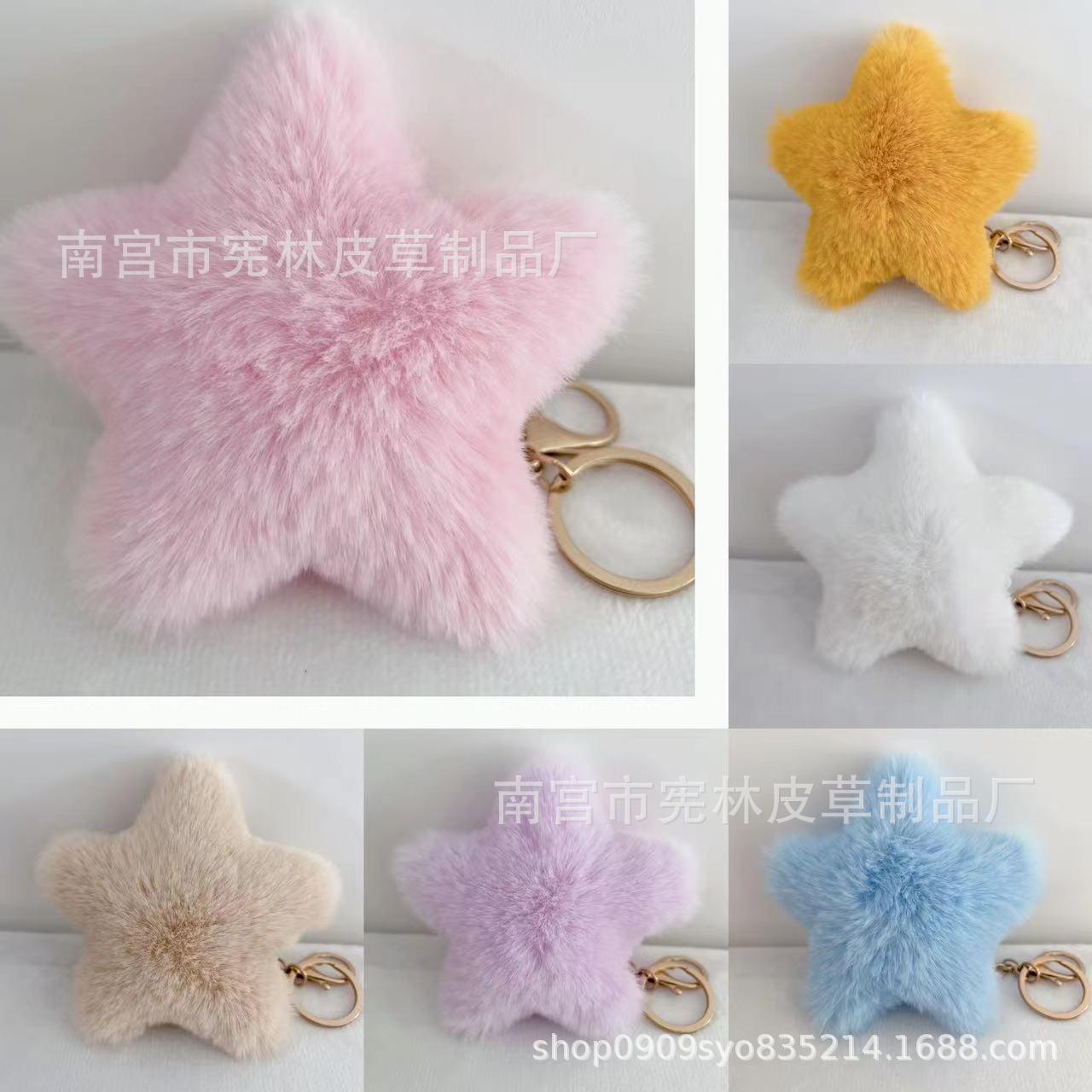 新型のかわいいぬいぐるみの星のペンダントはウサギの毛の自動車のキーホルダーの漫画のカバンの装飾品のカバンの装飾品をまねます。