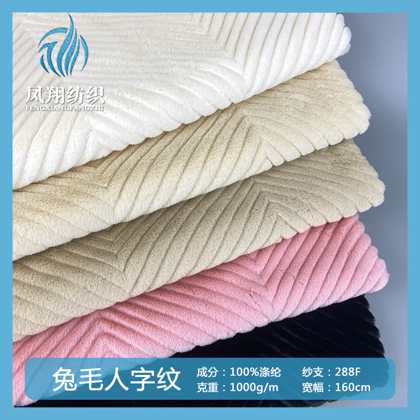 スポット1000gウサギ毛エンボスウサギ毛綾ウサギ毛カット溝人字紋v字花服装コートパイル生地