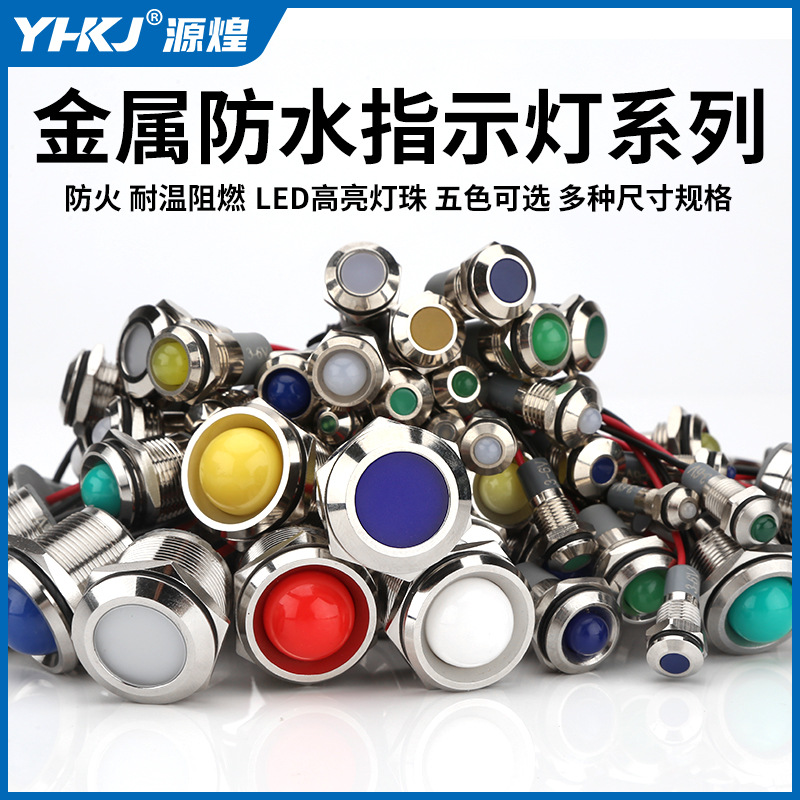 LED金属表示灯6mm 8mm 12mm 16mm防水電源動作信号灯線3v 5v 24 v 220v