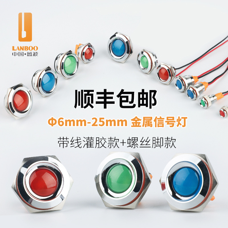 蓝波现货Z系列6mm-25mm金属LED指示灯红绿蓝黄白双色5V12V24V220V