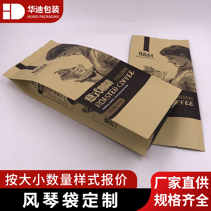 メーカー卸売エアバルブオルガン袋中封平口茶葉アルミ箔袋焙煎コーヒー豆クラフト紙包装袋