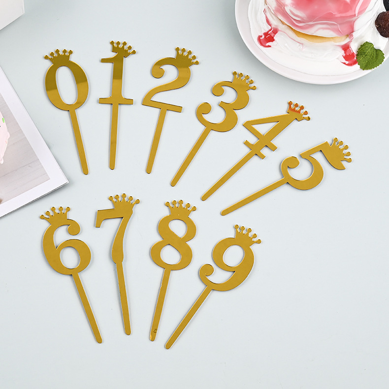 跨境热销金色亚克力数字蛋糕插牌生日主题派对甜品蛋糕装饰插件