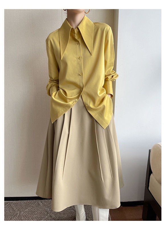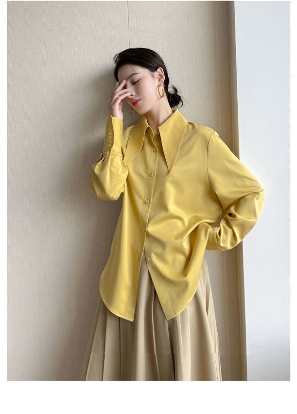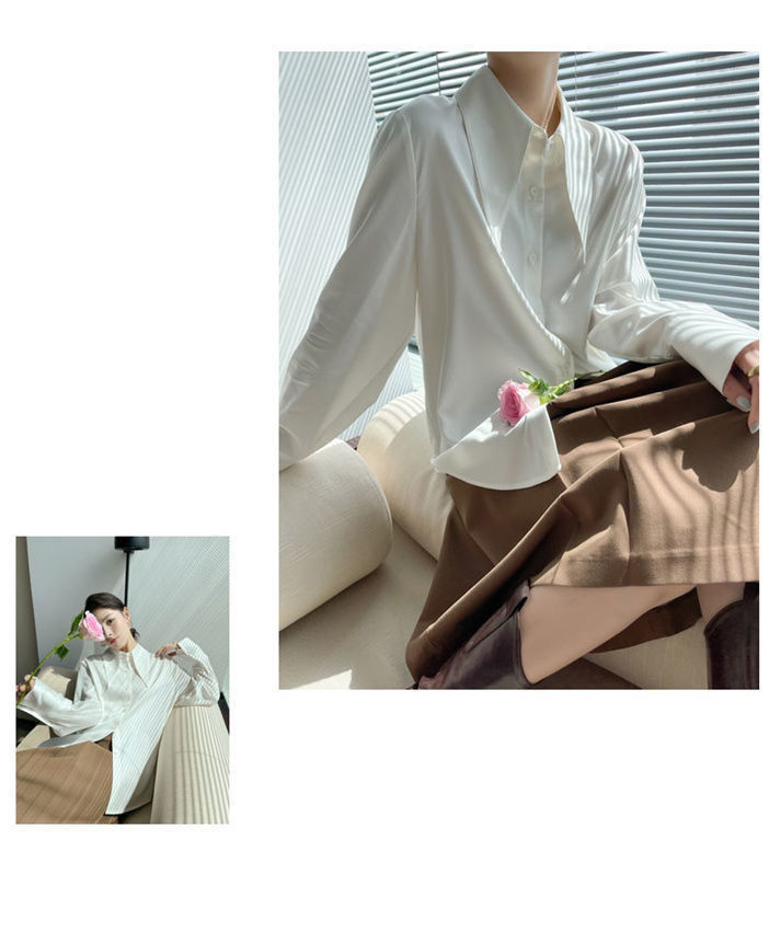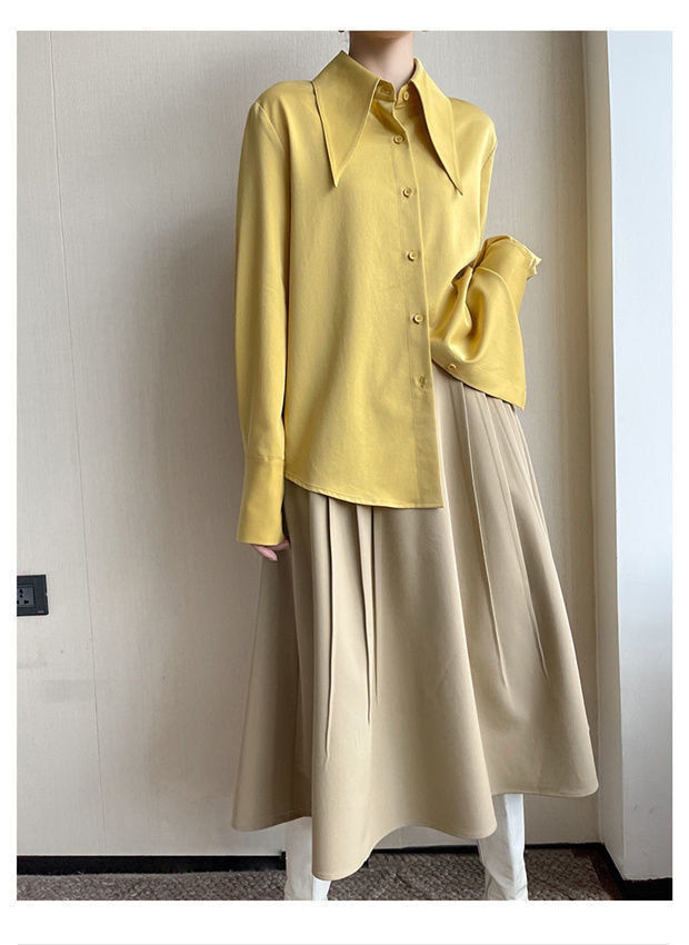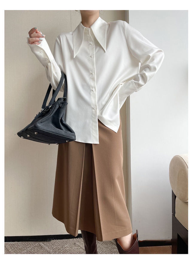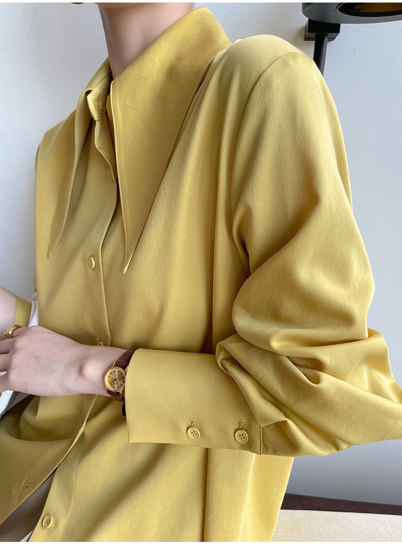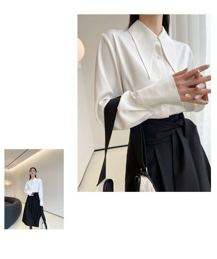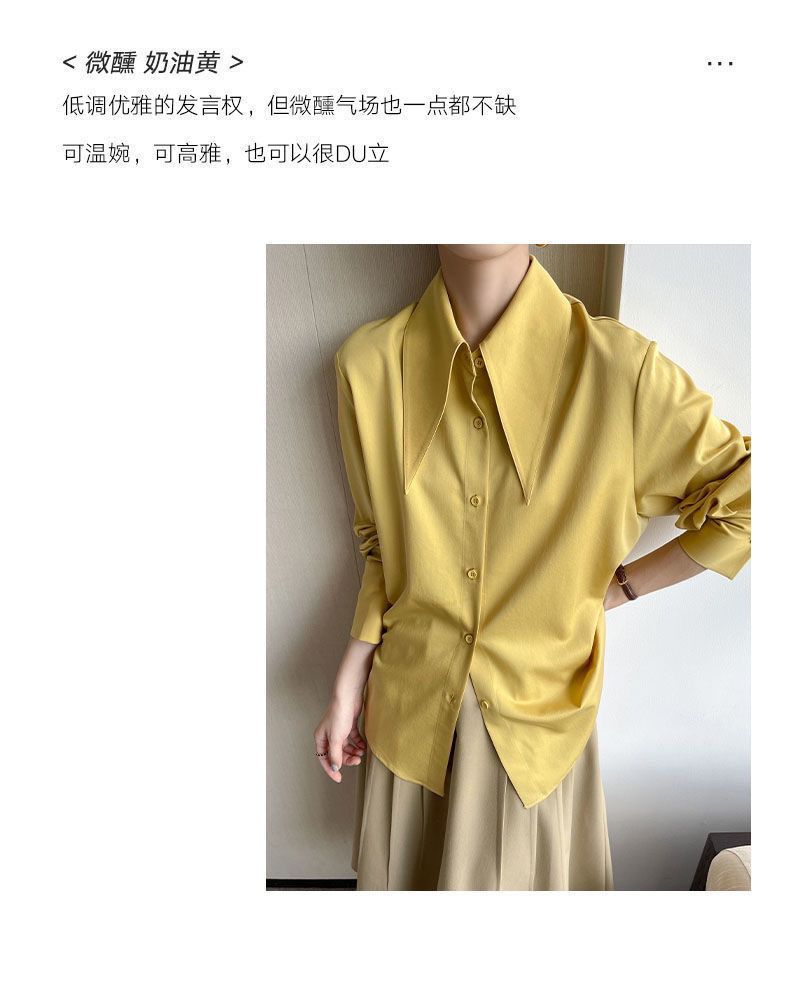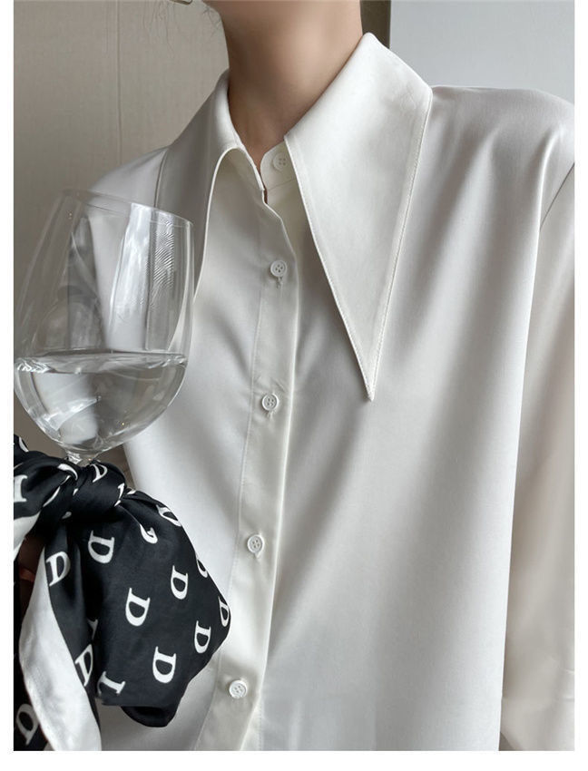 法式长袖衬衫女秋季新款高级感百搭垂感衬衣可叠穿别致大尖领上衣