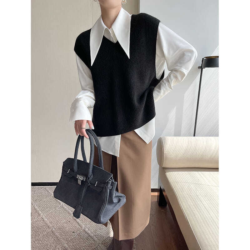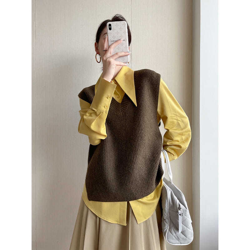 スポット 2025 秋と冬韓国スタイルシニアカシミヤ女性のルーズ怠惰なスタイルプルオーバーシルエットセーターニットボトリングシャツ
