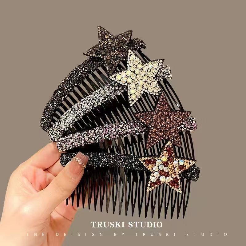 韓国版の軽くて豪華なダイヤモンドがちりばめられた五芒星のヘアピン、前髪と細い髪の整理整頓ツール、女性用逆くしヘアピン、女性用ヘッドアクセサリー