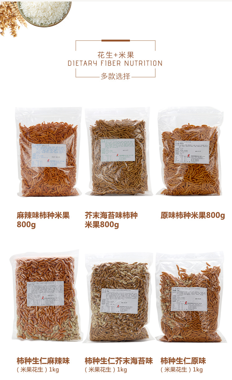 パッケージ仕様 柿種米果麻辛味800g,柿種米果わさびのり味800g,柿種米果原味800g,柿種生仁麻辛味1kg,柿種生仁わさびのり味1kg,柿種生仁原味1kg