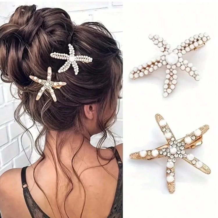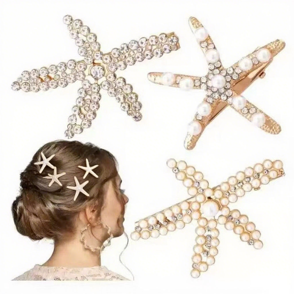 ヨーロッパとアメリカの国境を越えたレトロパールヒトデヘアピン女性カジュアルトップクリップヘアピン大人女の子ラインストーンヒトデカモノハシクリップ
